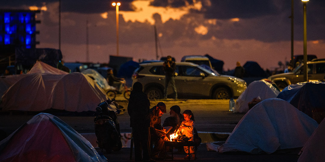 Displaced people warm up around a fire outside their tent along Beirut's seafront area on March 30, 2026. Israel renewed its bombardment of Beirut's southern suburbs on March 30 while continuing air strikes on Lebanon's south, one of which targeted an army checkpoint and killed a soldier. Lebanon was pulled into the Middle East conflict when Tehran-backed armed group Hezbollah fired rockets at Israel on March 2 in revenge for the killing of Iran's supreme leader, the opening salvo in the US-Israeli war against the Islamic republic.