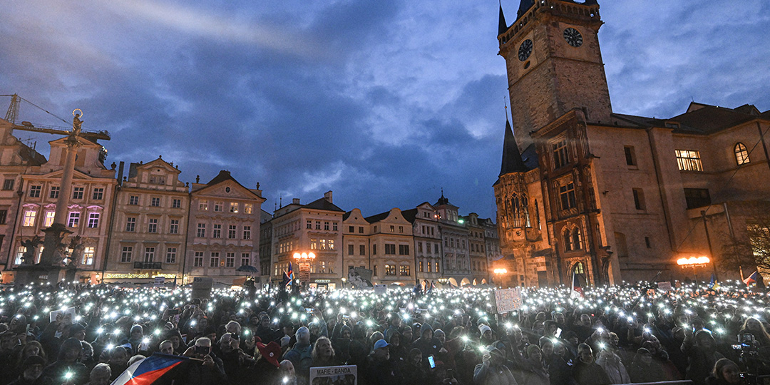 تظاهر آلاف التشيكيين والسلوفاكيين الاثنين في ذكرى الثورة المخملية، متهمين كلا من أندريه بابيس وروبرت فيكو بخيانة إرث الانتقال نحو الديموقراطية.