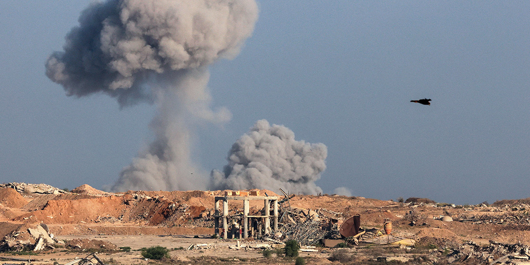 This picture taken from a position at Israel's border with the Gaza Strip shows smoke billowing during an Israeli strike on the besieged Palestinian territory on September 17, 2025. Israel launched its ground assault on Gaza City before dawn on September 16, shortly after the US Secretary of State's visit expressing robust support for the offensive, while a United Nations probe charged Israel with committing "genocide" in the Palestinian territory and accused its Prime Minister and other top officials of incitement. (Photo by Jack GUEZ / AFP)