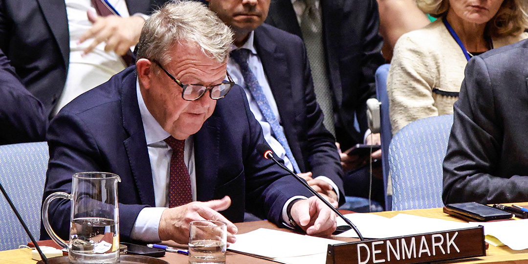 Denmark's Foreign Minister Lars Lokke Rasmussen speaks during a United Nations Security Council meeting on Ukraine at UN headquarters in New York on September 23, 2025. (Photo by Kena Betancur / AFP)