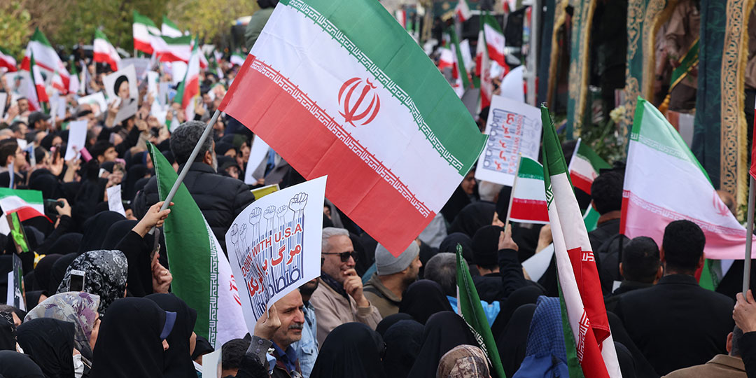Iranians wave national flags during the funerals of security forces personnel killed in recent protests in Tehran on January 14, 2026. A funeral ceremony began in Tehran on January 14, 2026 for over 100 members of the security forces and other "martyrs" killed in the wave of protests that has rocked the Islamic republic, state television said.