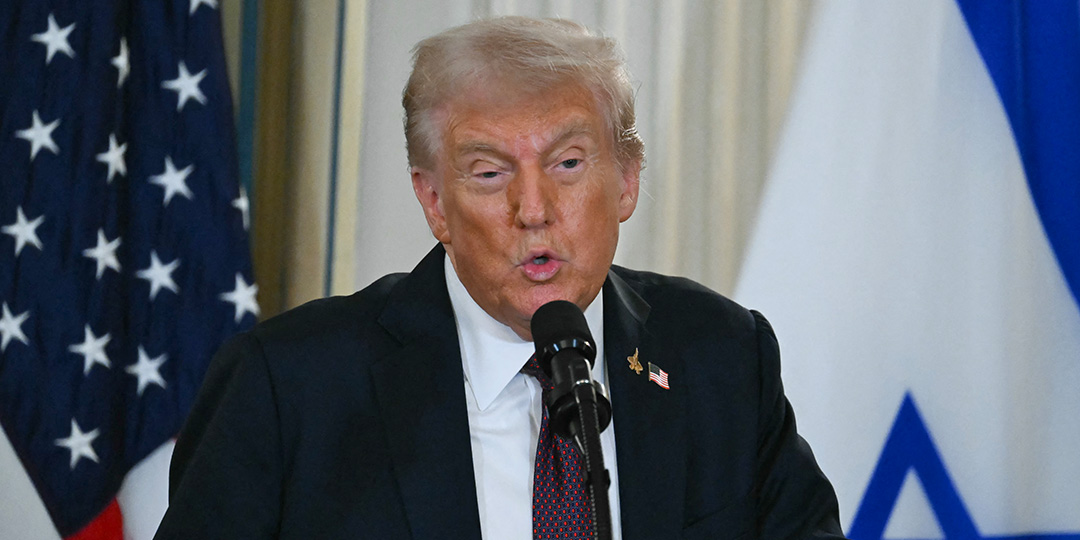 US President Donald Trump speaks during a press conference with Israeli Prime Minister Benjamin Netanyahu in the State Dining Room of the White House in Washington, DC on September 29, 2025. Gaza residents would not be forcibly displaced and President Donald Trump would head a transitional body under a peace plan released publicly Monday by the White House. (Photo by ANDREW CABALLERO-REYNOLDS / AFP)