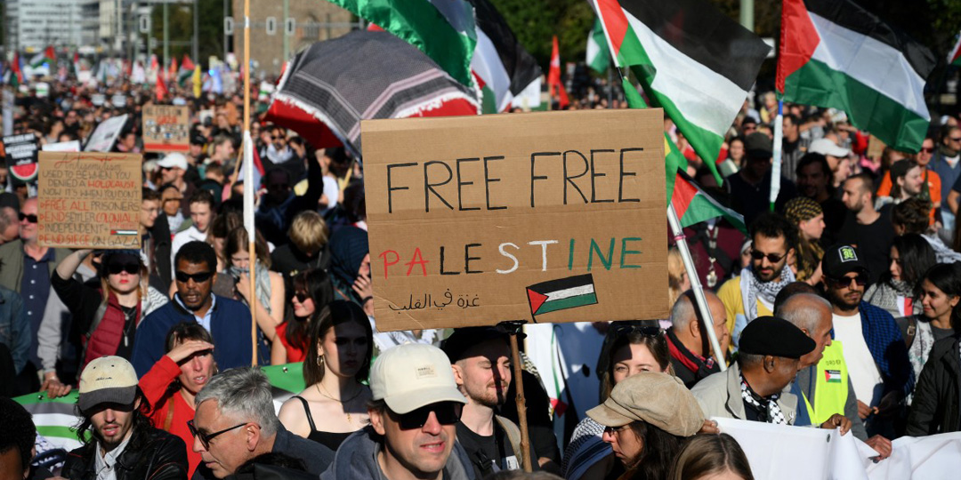 تظاهر عشرات الآلاف في شوارع العاصمة الألمانية السبت، مطالبين بوقف الحرب الإسرائيلية في قطاع غزة.