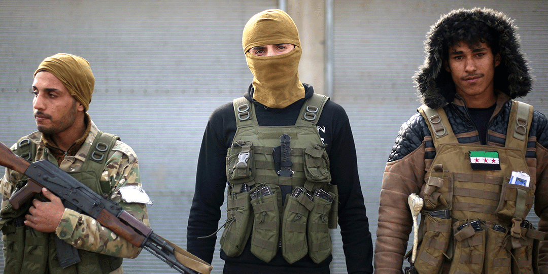 Fighters affiliated with the Turkish-backed Syrian National Army faction, stand guard along a road in the northeastern Manbij region, in Aleppo province on January 4, 2025, amid ongoing battles between Turkey-backed groups and Kurdish-led forces near the Tishreen Dam. In the latest clashes around the battleground northern town of Manbij, at least 24 fighters were killed, the Syrian Observatory for Human Rights war monitor said on January 2, despite US-led efforts to establish a truce in the area. (Photo by Aaref WATAD / AFP)
