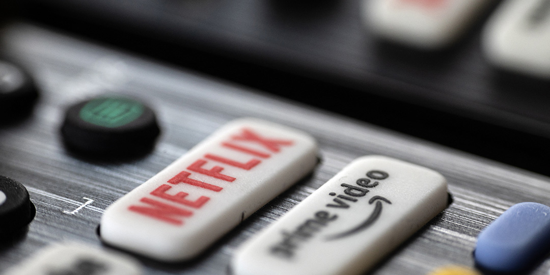This photograph shows a close-up of the Netflix logo on a TV remote control in Quimper, western France on April 10, 2025. (Photo by Fred TANNEAU / AFP)