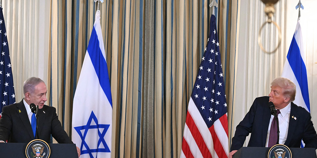 US President Donald Trump and Israeli Prime Minister Benjamin Netanyahu (L) participate in a press conference in the State Dining Room of the White House in Washington, DC on September 29, 2025. US President Donald Trump said on Monday that Washington was "very close" to securing peace in the Gaza war, after meeting with Israeli Prime Minister Benjamin Netanyahu and releasing a 20-point peace plan. (Photo by ANDREW CABALLERO-REYNOLDS / AFP)