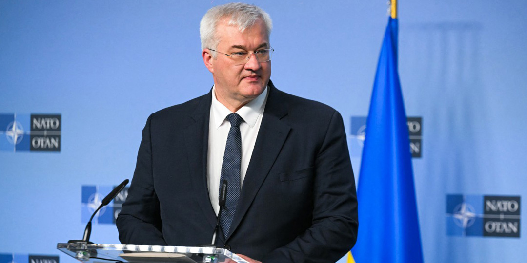 Ukraine's Foreign Minister Andriy Sybiha speaks during a joint press conference with NATO Secretary General on the sidelines of a meeting of the North Atlantic Council in Foreign Ministers’ session with Indo-Pacific partners Australia, Japan, New Zealand and the Republic of Korea, at NATO's headquarters in Brussels on April 3, 2025. (Photo by NICOLAS TUCAT / AFP)