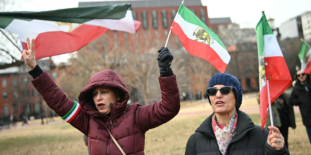 Activists take part in a rally supporting protestors in Iran at Lafayette Square, across from the White House in Washington, DC on January 3, 2026. President Donald Trump said on January 2 that the United States was "locked and loaded" to respond if Iran killed protesters, prompting Tehran to warn that intervention would destabilise the region.