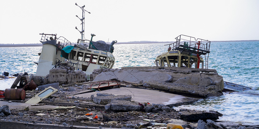 This picture shows destruction at the port in Yemen's city of Hodeida after Israel's military warplanes struck Yemen's rebel-held positions, on May 6, 2025. Israel's military said its warplanes struck Yemen's rebel-held capital Sanaa on May 6, "fully disabling the airport", the latest retaliation for a missile attack by the Iran-backed Huthis on Israel's main airport. (Photo by AFP)