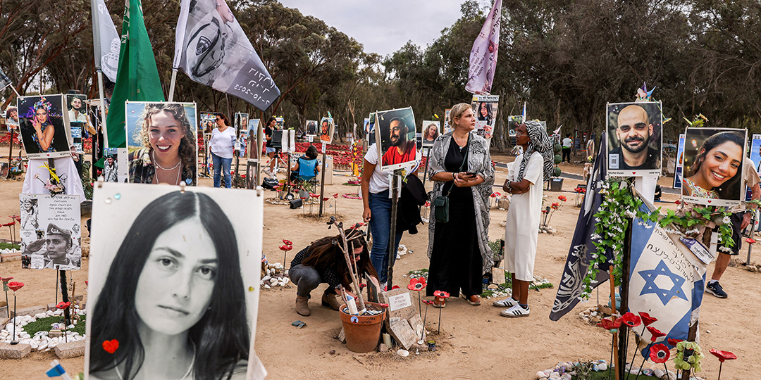 People visit a memorial for the victims killed at or kidnapped from the Supernova music festival during the October 7 attacks by Palestinian militants, at the festival site near Kibbutz Reim in southern Israel, on the eve of the attacks' first anniversary on October 6, 2024. Amnesty International on December 11, 2025, accused Hamas and other Palestinian armed groups for the first time of crimes against humanity, including extermination, during and after the October 7, 2023 attack that sparked the war in Gaza.