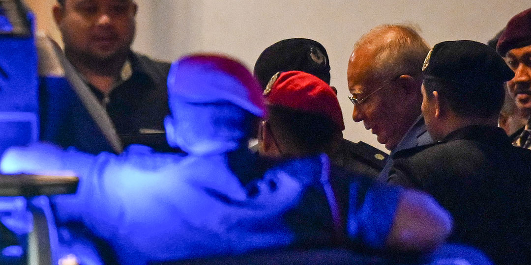 Malaysia's former prime minister Najib Razak (2R) leaves after his verdict in the 1MDB trial at the Palace of Justice, which houses the Malaysian Court of Appeal and Federal Court, in Putrajaya on December 26, 2025. A Malaysian judge sentenced former prime minister Najib Razak to 15 years in jail on December 26 after finding him guilty of abuse of power and money laundering in the 1MDB sovereign wealth fund graft scandal.
