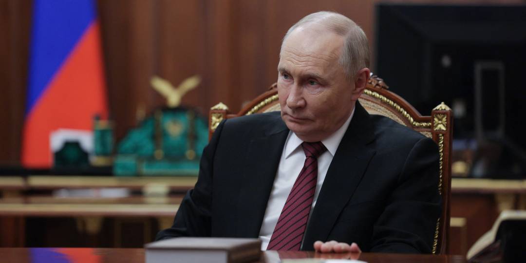 In this pool photograph distributed by the Russian state agency Sputnik, Russia's President Vladimir Putin attends a meeting with the Constitutional Court Chairman at the Kremlin in Moscow on December 11, 2025. (Photo by Gavriil Grigorov / POOL / AFP)