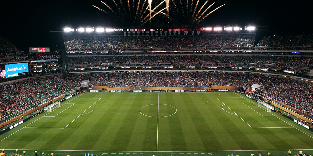 The video was described as “an aerial flyby of a skyscraper stadium design” in the caption.