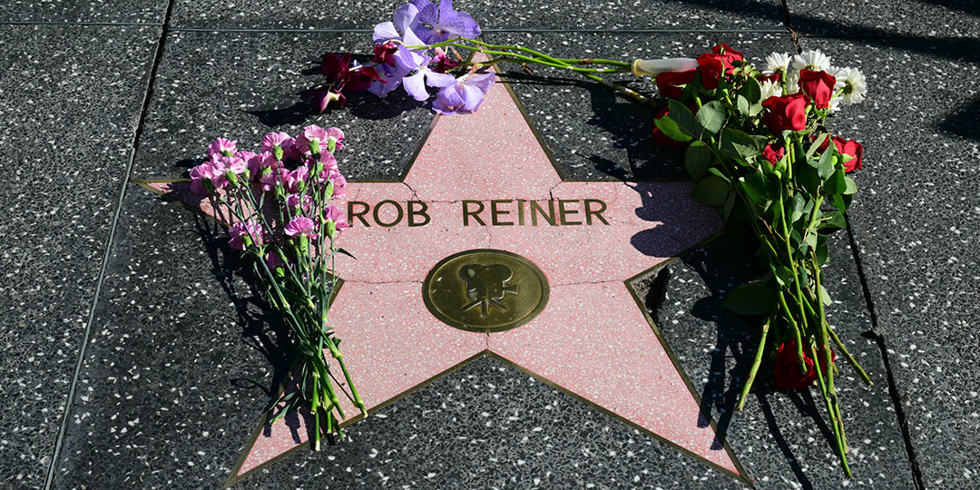 Flowers are left at US actor and director Rob Reiner's Star on the Hollywood Walk of Fame in Los Angeles, California, on December 15, 2025. Reiner's son was charged with murder, police said on December 15, after his father and mother were found dead the previous day in their Los Angeles home.