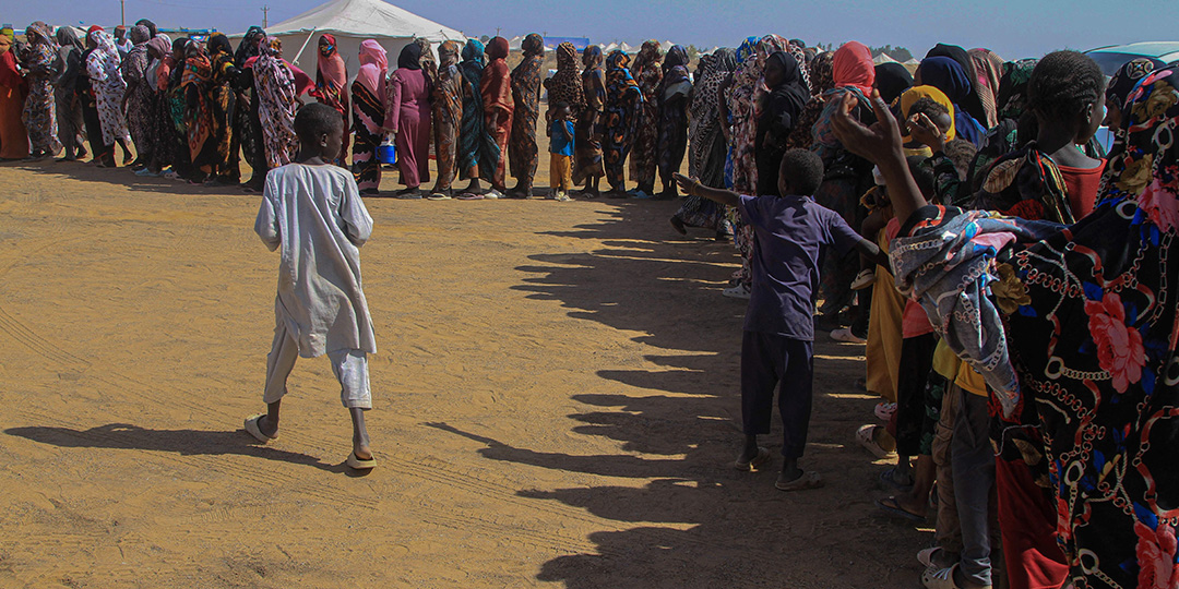 Sudanese women who fled El-Fasher line up to receive humanitarian aid at the Al-Afad camp for displaced people in the town of Al-Dabba, northern Sudan, on November 25, 2025. Sudan's army said on November 25 it had repelled a Rapid Support Forces attack on a strategic city in southern Kordofan, a day after the RSF declared a unilateral three-month ceasefire. In a statement, the military, which has been at war with the RSF since April 2023, said its troops had "pushed back an assault" on an infantry base in the town of Babanusa.