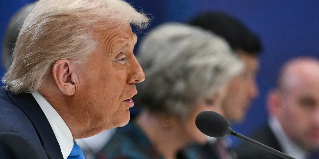 US President Donald Trump attends a bilateral meeting with South Korean President Lee Jae Myung at the Gyeongju National Museum in Gyeongju on October 29, 2025. (Photo by ANDREW CABALLERO-REYNOLDS / AFP)