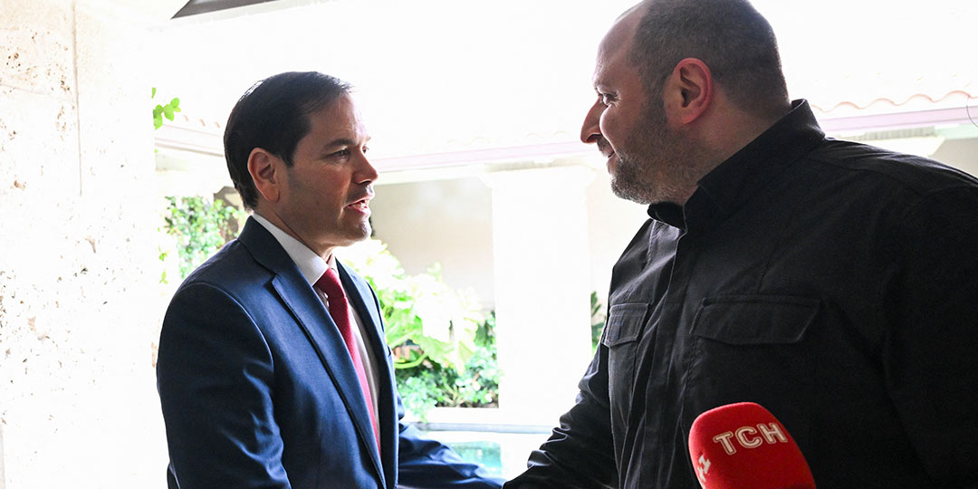 US Secretary of State Marco Rubio and Secretary of the National Security and Defense Council of Ukraine Rustem Umerov shake hands after speaking to reporters following their meeting in Hallandale Beach, Florida on November 30, 2025. Rubio hailed talks with a Ukrainian delegation in Florida as "very productive," but cautioned that more work was required to halt Russia's war with its neighbor.